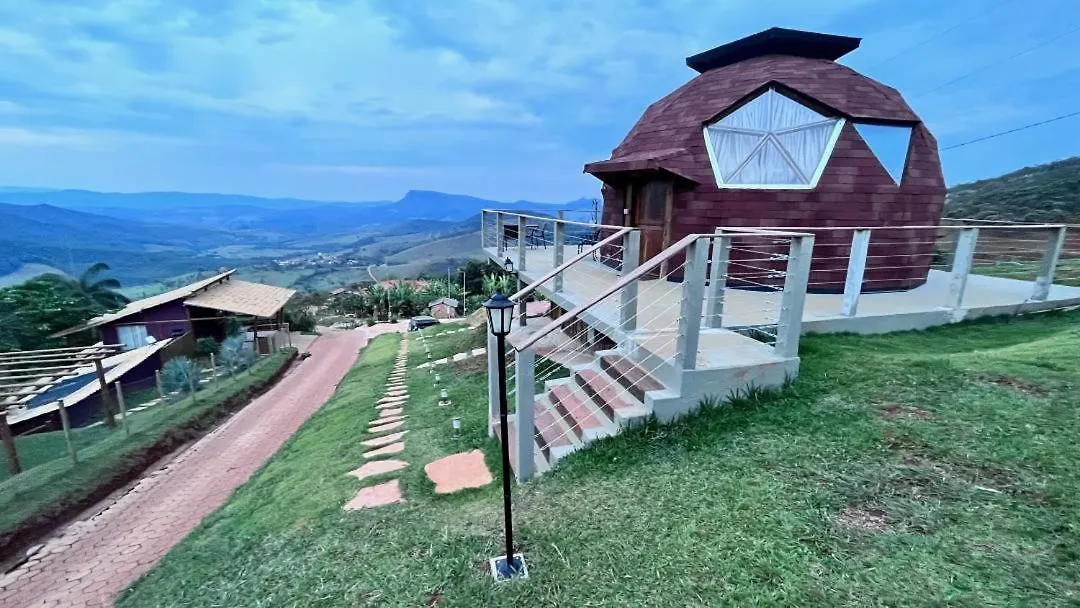 Die Villa Chales Beija-Flor Itambé do Mato Dentro verfügt über ein privater Parkplatz und eine Terrasse mit Aussicht auf die Berge.